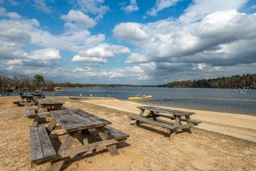 Wood County operates a 55 acre county park at the Lake Hawkins dam with a white sand beach (700 feet of shoreline), a fishing pier, RV and tent sites, a pavilion, boat and RV storage, a boat launch, picnic facilities and restrooms. These grounds are beautifully maintained by a private contractor/magnificent member of the community. This park is directly across the street from the Hideout grounds, which makes for a short walk to the beach!